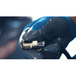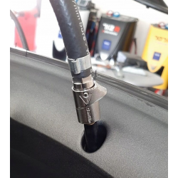 Fits a hose with an internal diameter of 6mm. The nozzle features a patented solution and a locking mechanism, so that it is possible to inflate the tyre from a distance of several metres, as there is no need to hold the nozzle on the valve. This in turn provides a guarantee of safety for the user during this process.
