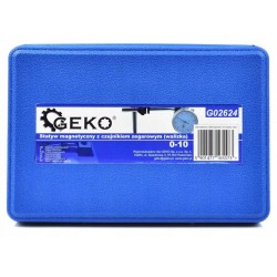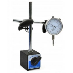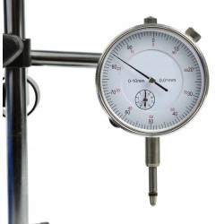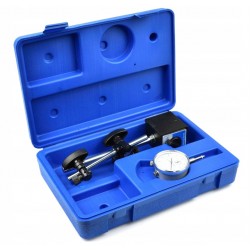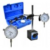 Precision dial indicator 0–10 mm with 0.01 mm accuracy, included with a magnetic base. This set is designed for highly accurate measurement of geometric shapes of various components and for checking their relative positions within assemblies.