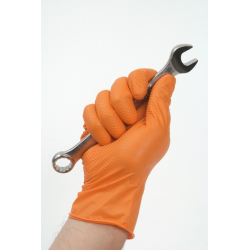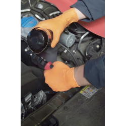 The characteristic orange Tiger Grip model has gained the recognition of professionals mainly due to its unique texture. Specially developed embossing significantly improves grip, eliminating the risk of objects slipping, which can be troublesome with traditional, smooth products. The solid wall thickness (0.20 mm) guarantees above-average tear resistance, and the intense color facilitates hand orientation in dark areas of the chassis or engine.
