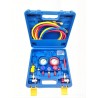 Profesjonalny zestaw manometrów do napełniania i sprawdzania szczelności układów klimatyzacji samochodowej i stacjonarnej zawierających czynnik chłodniczy R1234yf oraz R134a. Manometry umożliwiają również precyzyjnie sprawdzić poziom ciśnienia w klimatyzacji oraz dokonują pomiarów dla układów wysokiego i niskiego ciśnienia. Są one dwuzakresowe, tzn. wskazują wartość temperatury i ciśnienia w układzie klimatyzacji.