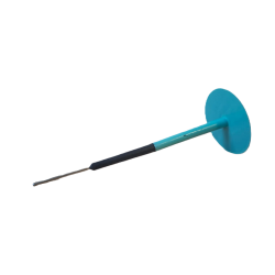 | Dopasować kołek tak, aby uszkodzone miejsce znalazło się w centrum grzybka, a następnie obrysować obszar nieco większy od grzybka. | Na zaznaczonym obszarze rozprowadź Buffer, aby rozpuścić smar i brud na powierzchni adhezji. | Za pomocą skrobaka usunąć zanieczyszczenia. |