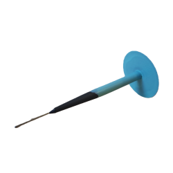 | Dopasować kołek tak, aby uszkodzone miejsce znalazło się w centrum grzybka, a następnie obrysować obszar nieco większy od grzybka. | Na zaznaczonym obszarze rozprowadź Buffer, aby rozpuścić smar i brud na powierzchni adhezji. | Za pomocą skrobaka usunąć zanieczyszczenia. |